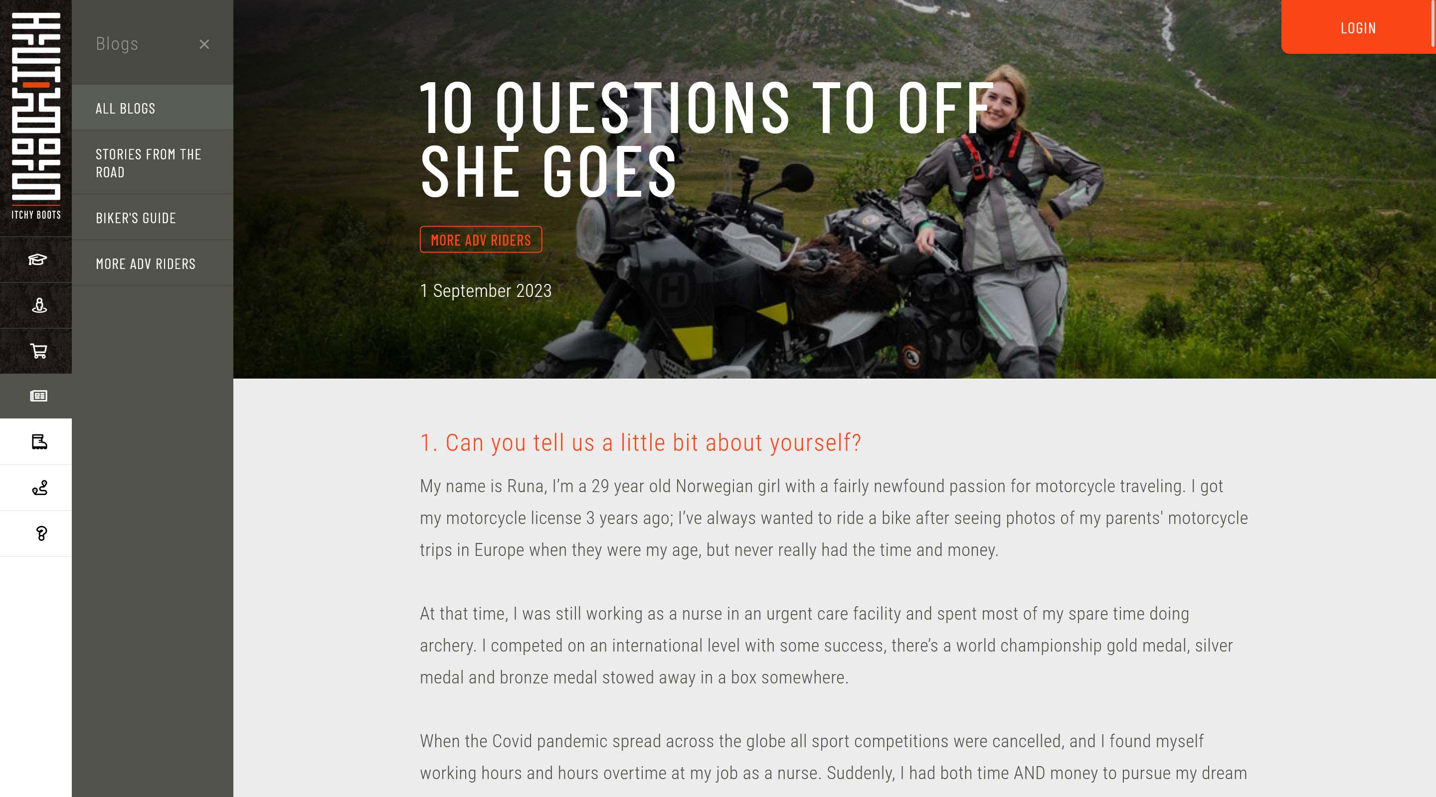 De Nederlandse Noraly Schoenmaker trekt met haar motor solo de hele wereld over. Van al haar reizen en avonturen doet Noraly verslag op haar YouTube-kanaal genaamd ‘Itchy Boots’. En met enorm succes want inmiddels heeft zij ruim 2,3 miljoen abonnees op haar YouTube-kanaal!