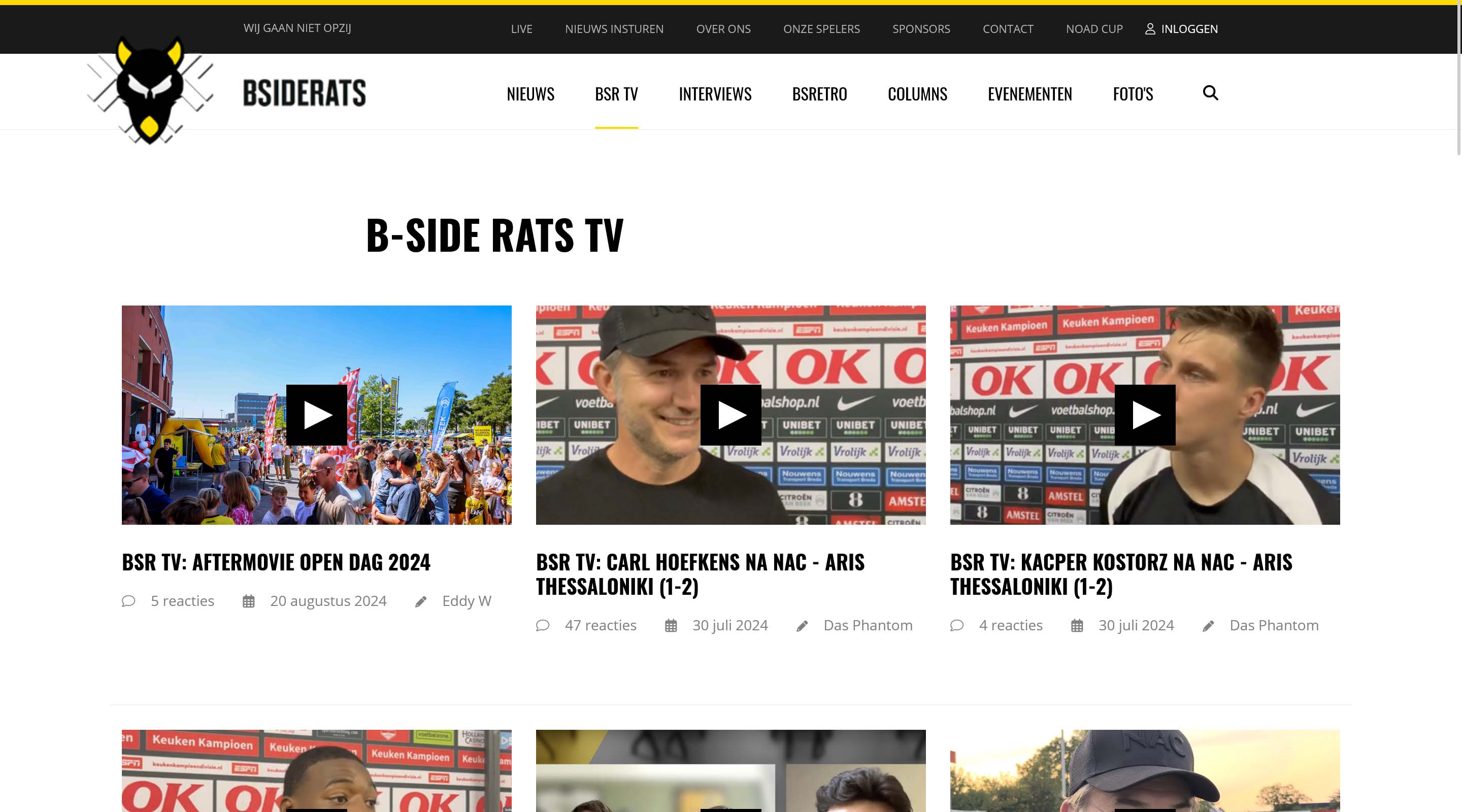 RB-Media ontwikkelde de nieuwe website voor NAC-supporterssite B-SideRats.nl uit Breda.