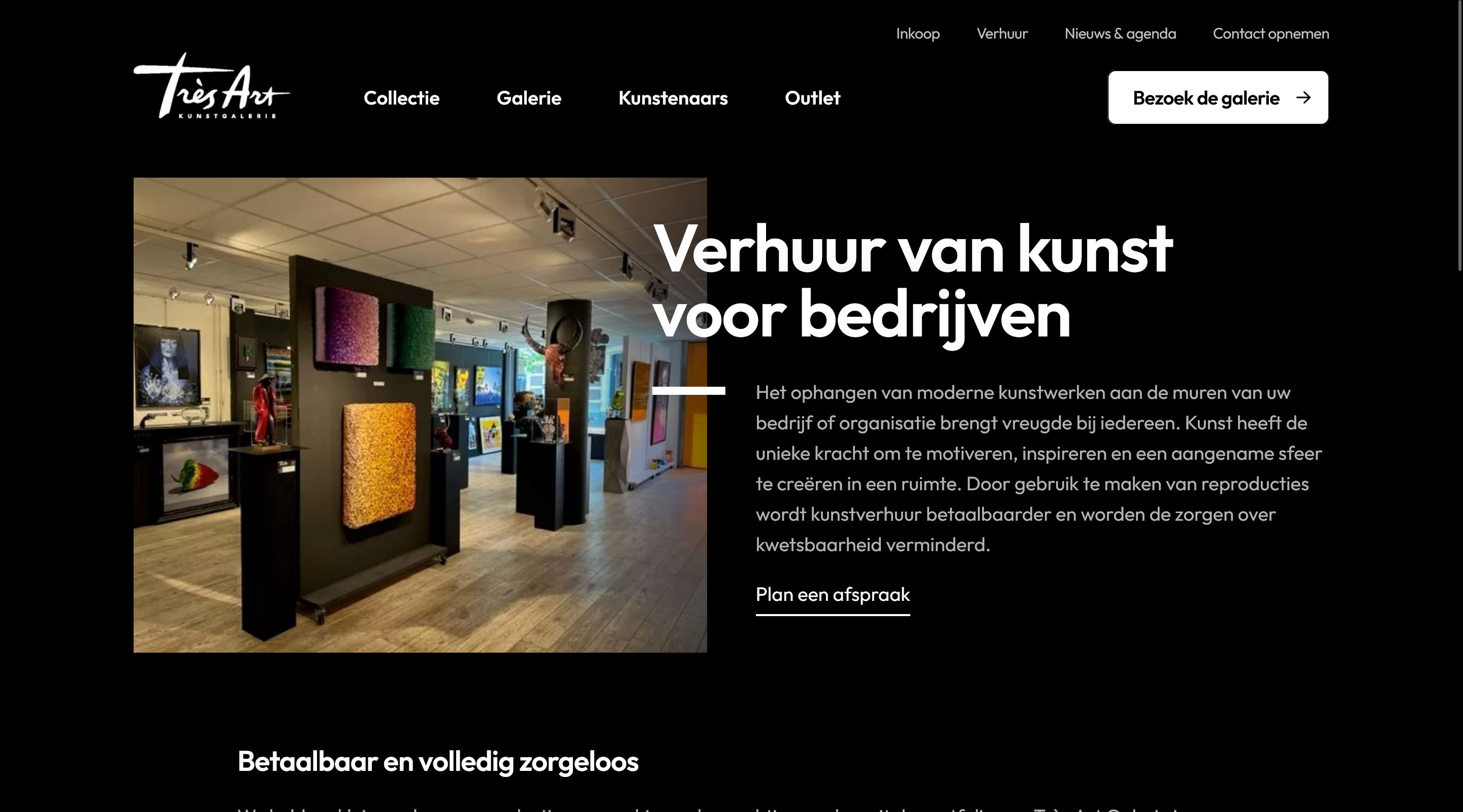 Voor kunstgalerie Très Art van Arian van der Hoeven uit Breda ontwikkelde RB-Media de complete nieuwe website.