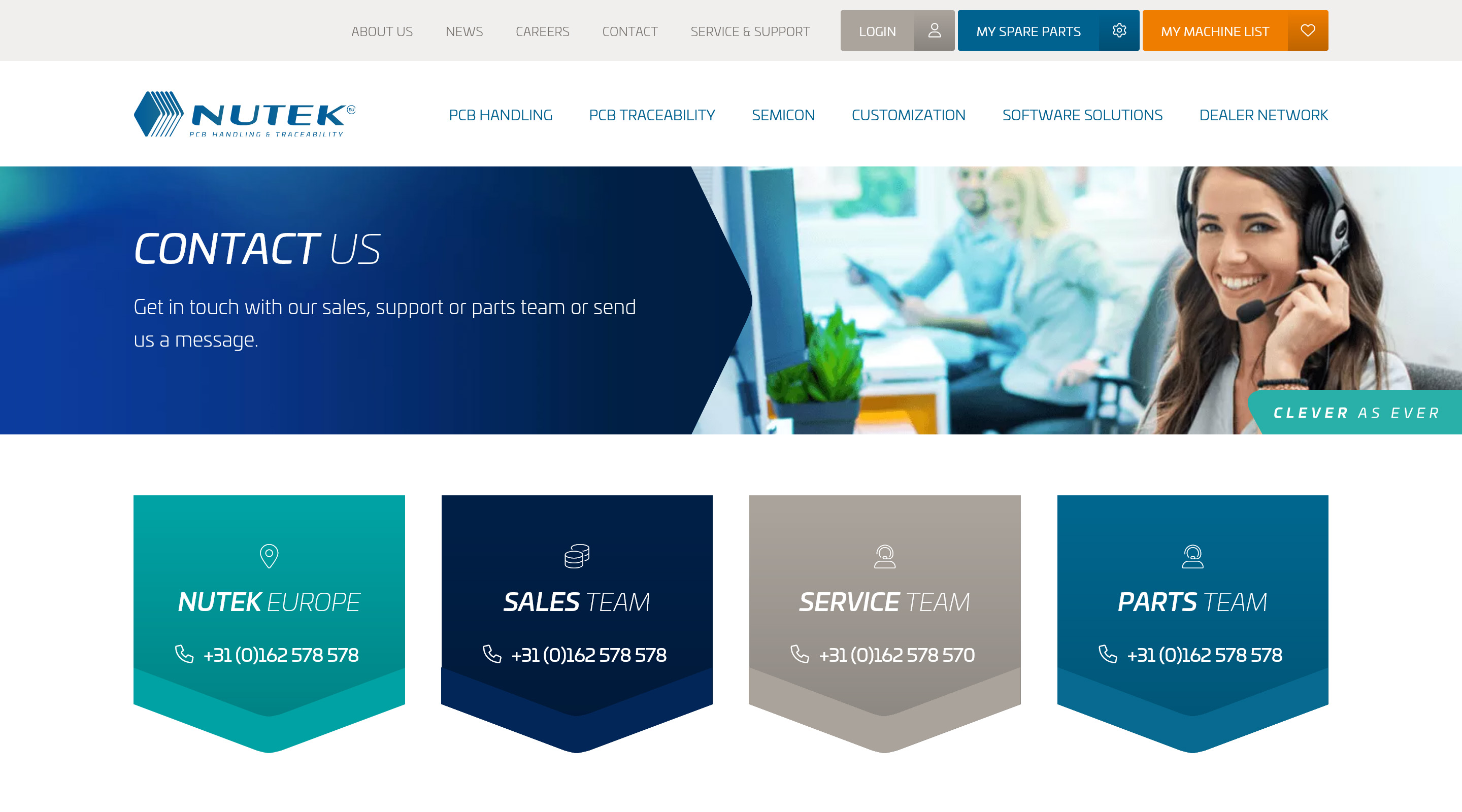 Nutek is wereldwijd marktleider in het ontwerpen en produceren van boardhandling en traceability systemen ten behoeve van de printplaat assemblage. Nutek Europe is sinds 1992 verantwoordelijk voor de verkoop, installatie en service van de systemen binnen Europa. Vanuit Raamsdonksveer werkt een hecht team van gemotiveerde professionals.